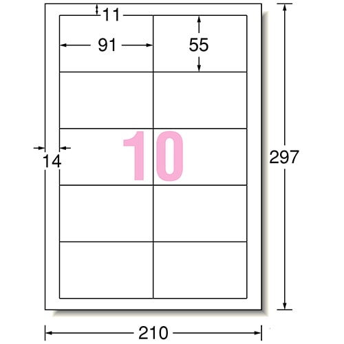 エーワン ラベルシール[プリンタ兼用] マット紙・ホワイト A4 10面 91×55mm 四辺余白付 31514 100枚/冊(ご注文単位1冊)【直送品】