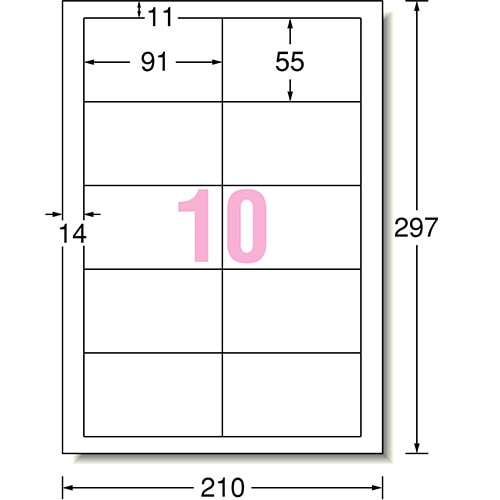 エーワン ラベルシール[プリンタ兼用] マット紙・ホワイト A4 10面 91×55mm 四辺余白付 72110 22枚/冊(ご注文単位1冊)【直送品】