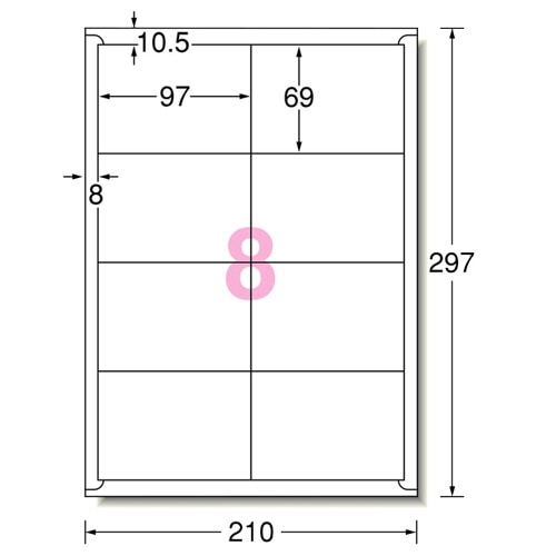 エーワン ラベルシール[プリンタ兼用] マット紙・ホワイト A4 8面 97×69mm 四辺余白付 73208 100枚/冊(ご注文単位1冊)【直送品】