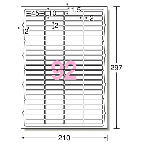 エーワン ラベルシール[プリンタ兼用] マット紙・ホワイト A4 92面 45×10mm 四辺余白付 角丸 73292 100枚/冊(ご注文単位1冊)【直送品】