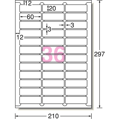 エーワン ラベルシール[レーザープリンタ] マット紙・ホワイト A4判 36面 60×20mm 四辺余白付 角丸 65236 20枚/冊(ご注文単位1冊)【直送品】