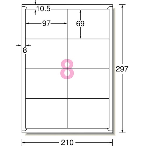 エーワン ラベルシール[レーザープリンタ] マット紙・ホワイト A4判 8面 97×69mm 四辺余白付 65208 20枚/冊(ご注文単位1冊)【直送品】