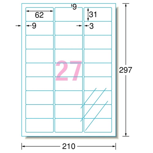 エーワン ラベルシール[レーザープリンタ] 光沢フィルム・透明 A4 27面 62×31mm 31582 10枚/冊(ご注文単位1冊)【直送品】