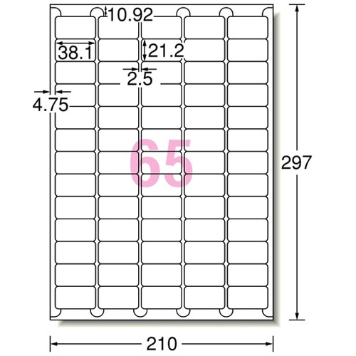 エーワン ラベルシール[レーザープリンタ] 水に強いタイプ マット紙・ホワイト A4 65面 38.1×21.2mm 31377 20枚/冊(ご注文単位1冊)【直送品】