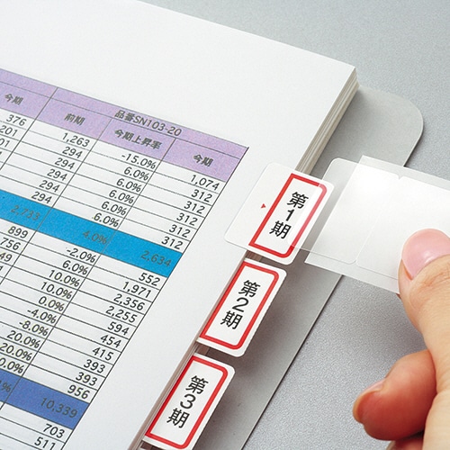 - ●ファイリングした書類の整理・整頓に便利なインデックスラベル!●仕様/保護フィルム付強粘着タイプ、タックインデックス(中)、モノクロコピー、カラーレーザー、モノクロレーザー、インクジェット●シートサイズ/A4●ラベルサイズ/23×32mm●面付け/56面●紙質/上質紙●罫色/赤●総厚み/0.15mm●保護フィルムの厚み/0.06mm●1冊=ラベル5シート+保護フィルム5シート※用紙厚さ132g/m2以上に対応する機種でお使いください。※用紙厚132g/平米以上で対応する機種でお使いください。●保護フィルム付で耐久性UP!