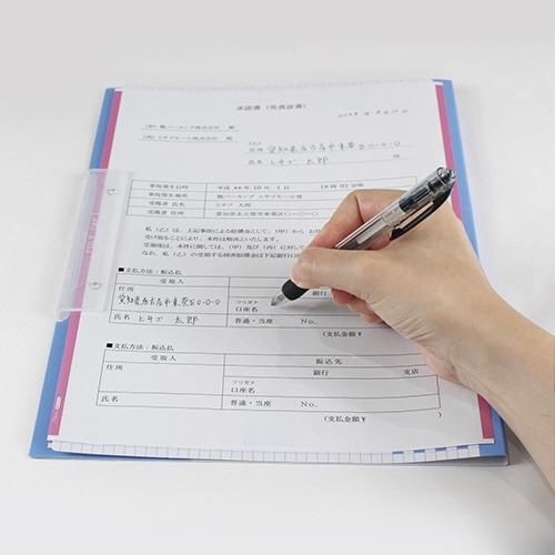 - ●表紙が折り込みの下敷きに。●サイズ/A4タテ●寸法/225×9×307mm●とじ厚/8mm●とじ穴間隔/80mm●収容枚数/最大約40枚(コピー用紙の場合)●穴数/2●材質/本体:厚紙(310g/m2)PP加工、とじ具:ポリプロピレン●とじ具/ホック式●1セット=5冊●A4タテ、ブルーのキャリーバインダー、5冊入です。●複写したい分のみの記入が可能。