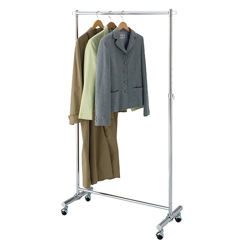 ●高耐荷重のコートハンガー●寸法/W900×D410×H1110・1405~1605mm●重量/5.4kg●色/シルバー●耐荷重/全体:100kg●材質/本体:スチール(クロームメッキ)、キャスター:PP●脚部仕様(キャスター/アジャスター)/キャスター(ストッパーなし)●製造国/台湾●付属品/六角レンチ(大・小)、スパナ※H1405~1605mm間50mmピッチ・5段階で固定できます。ハンガーパイプを全く上げていない(固定していない)場合はH1110mmになります。※お客様組立商品となります。(工具付属)●幅900mm、シルバータイプ。