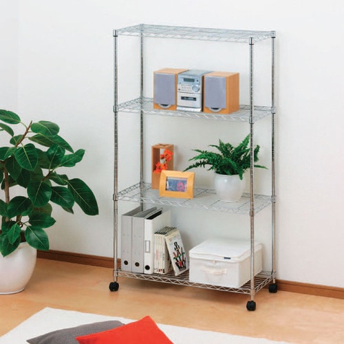 アイリスオーヤマ メタルシェルフ 4段 幅800×奥行350×高さ1490mm キャスター付 SEM-8015 1台(ご注文単位1台)【直送品】