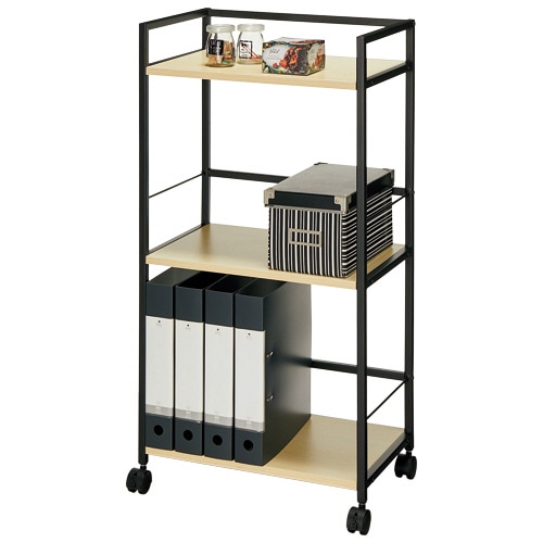 アスカ デスクワゴン 3段 ナチュラル/ブラック DWG03BK 1台(ご注文単位1台)【直送品】