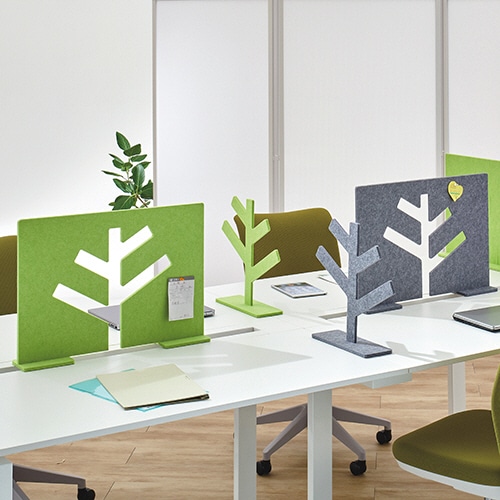 - ●空間を程よく遮蔽する、樹木シルエットをあしらったデザインパーティション。●寸法/W580×D100×H410mm●重量/0.6kg●色/グリーン●ピン可●材質/パネル:硬質フェルト●パネル厚/9mm●必要工具/プラスドライバー●製造国/日本※お客様組み立て商品となります。●グリーンの簡単据置式のデスクトップパネル。●表面は空間をやさしく演出するフェルト製、画鋲でメモや写真を刺すことも可能。●集中したいときはパーツを分けて前面と側面に置けば程よく分けた空間を確立できる。