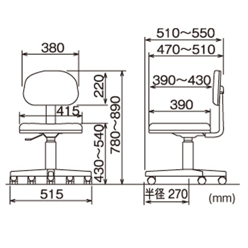 約幅63×奥行63×高さ100~109cm/座面高:47~56cm