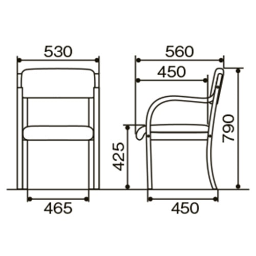 - 背座:PVCレザー、ウレタンフォーム、合板・脚:積層合板、NC塗装