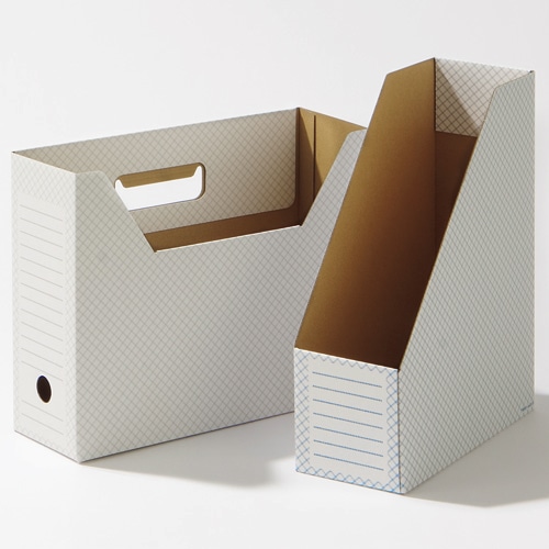 - ●シンプルなホワイトカラーなので、どんなシーンにもぴったり。●仕様/A4タテ●背幅/100mm●サイズ/W252×D100×H310mm●色/グレー●材質/段ボール(古紙パルプ配合)●ワンタッチ組立式●1セット=10冊×5