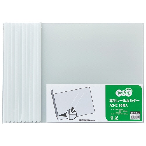 TANOSEE 再生レールホルダー A3ヨコ 10枚収容 白 10冊/袋(ご注文単位1袋)【直送品】