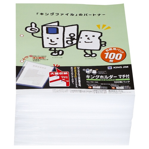 キングジム キングホルダーポケット マチ付 A4タテ 乳白 781-100 100枚/袋(ご注文単位1袋)【直送品】