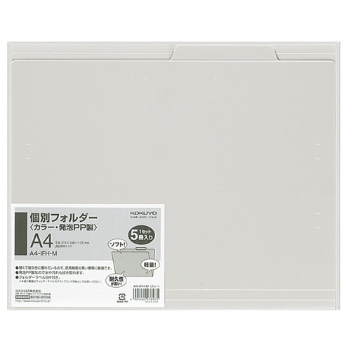 コクヨ 個別フォルダー(カラー・PP製) A4 グレー A4-IFH-M 5冊/袋(ご注文単位1袋)【直送品】
