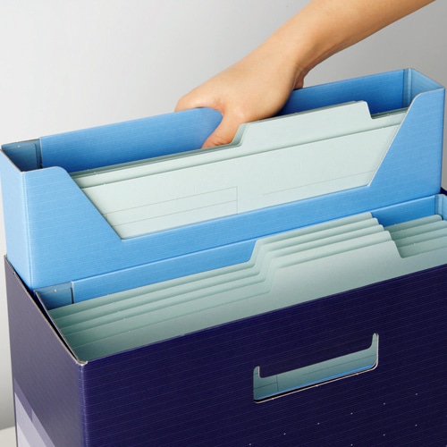 プラス デジャヴカラーズシリーズ ボックスファイル レギュラー A4ヨコ 背幅100mm ネイビーブルー FL-023BFNB 1冊(ご注文単位1冊)【直送品】
