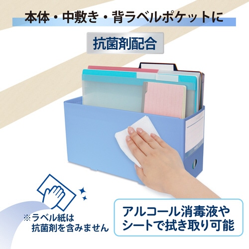 プラス 抗菌PPボックスファイル A4ヨコ ハーフサイズ 背幅100mm ブルー FL-201AB-H 1個(ご注文単位1個)【直送品】
