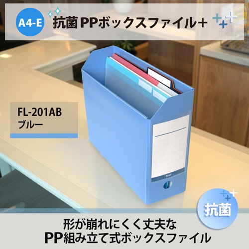 プラス 抗菌PPボックスファイル A4ヨコ 背幅100mm ブルー FL-201AB 1個(ご注文単位1個)【直送品】