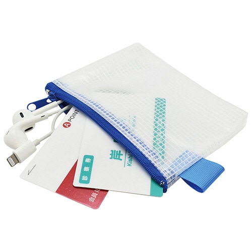 - ●小物をサッとひとまとめ。中身が見える収納ポーチ。●サイズ/A7●寸法/タテ90×ヨコ130mm●マチ幅/5mm●材質/本体:PEVA●イヤホン・USB等の収納に、A7対応サイズのメッシュケースです。