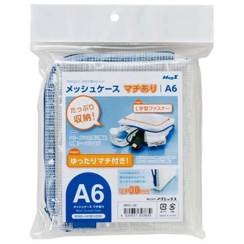 マグエックス メッシュケース マチあり A6 青 MMCL-A6 1枚(ご注文単位1枚)【直送品】