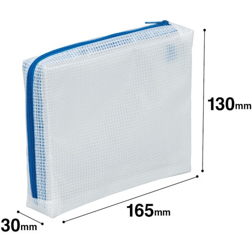 - ●L型チャック+マチ付で抜群の収納力。●仕様/A6、メッシュタイプ●サイズ/外寸タテ130×ヨコ165mm●色/青●材質/PEVA●厚さ/0.3mm●マチ幅/30mm