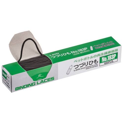 ライオン事務器 つづりひも 450mm セル先 再生ポリエステル繊維32本織 No.183P 100本/箱(ご注文単位1箱)【直送品】