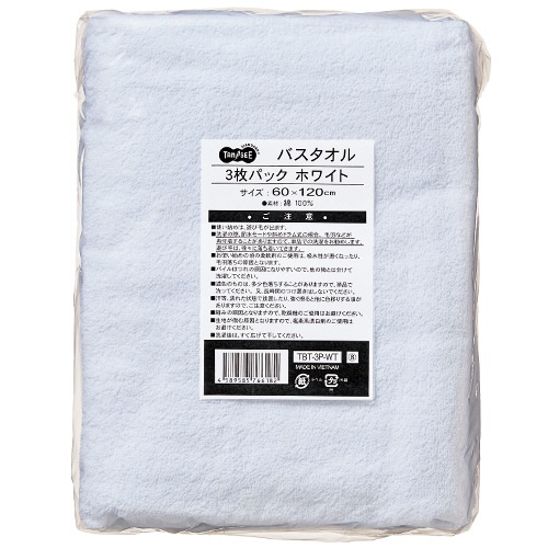 TANOSEE バスタオル ホワイト 3枚/袋(ご注文単位1袋)【直送品】