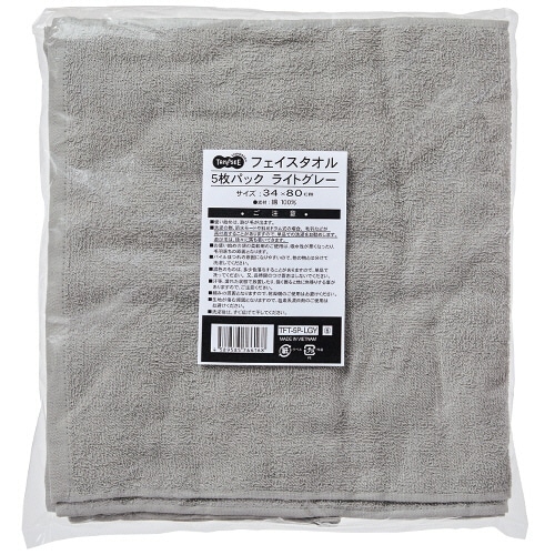 TANOSEE フェイスタオル ライトグレー 5枚/袋(ご注文単位1袋)【直送品】
