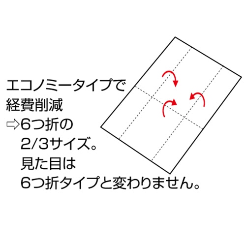 - ●見た目は6つ折。エコサイズ16.5×25cmのナプキン!●種類/ナプキン●折り方/6つ折●展開サイズ/タテ約165×ヨコ250mm●材質/パルプ●生産国/日本●エコノミータイプ●折りサイズ/約135×85mm●パックサイズ/430×145×85mm●1パック=100枚×10袋●エコノミータイプで経費削減のペーパーナプキン100枚入×10袋です。●6つ折の2/3サイズ。見た目は6つ折タイプと変わりません。