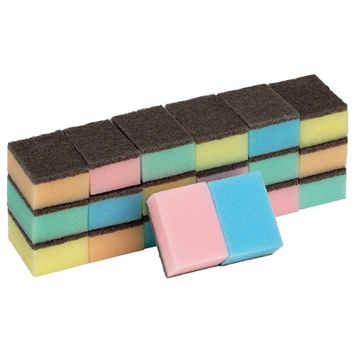- ●材質によって使い分け!ハードタイプのミニスポンジ。●種類/スポンジ●寸法(1個あたり)/W70×D50×H30mm●色/青、緑、黄、橙、桃×各4個●材質/ナイロン不織布(研磨剤入)、ポリウレタンフォーム●生産国/中国●1パック=20個