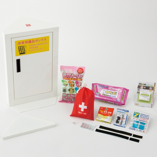 - ●地震や故障でとじこめられたときのためにエレベーター内にも非常時の備えを!●仕様/コンパクト引手●セット内容/ウエットタオル、緊急呼子笛、LEDセンサーライト、4層アルミシート、吸盤付クリップ2個、簡易トイレ(4回分)、救急セット(推奨交換:3年)、耐震マット4枚、面ファスナー2枚、棚板1枚、封印シール5枚、キャビネット本体●外寸/W360×D230×H550mm●重量/5.8kg●材質/スチール粉体焼付塗装※外寸、重量はキャビネット本体のみ。※エレベーターの構造によっては設置できない場合があります。●キャビネットと備蓄用品がセットになりました。(非常食は付属しません。)