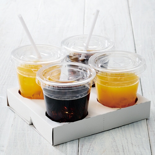 - ●持ち帰りドリンクに。●寸法/W190×D170×H33mm●材質/古紙パルプ、パルプ●4個用●1パック=25枚●収納スペースに困らない組み立て式のテイクアウトホルダー。4個用の25枚入です。