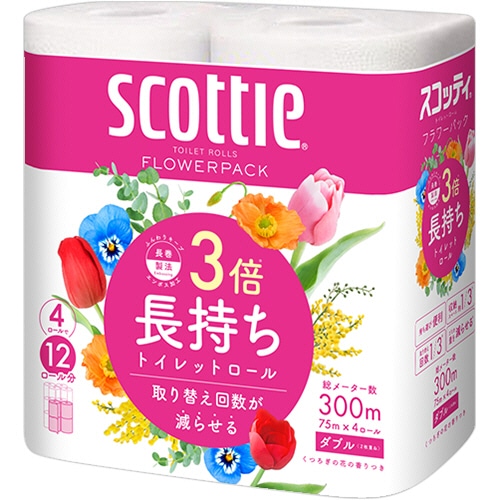 日本製紙クレシア スコッティ フラワーパック 3倍長持ち ダブル 芯あり 75m 香り付き 4ロール/袋(ご注文単位1袋)【直送品】