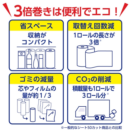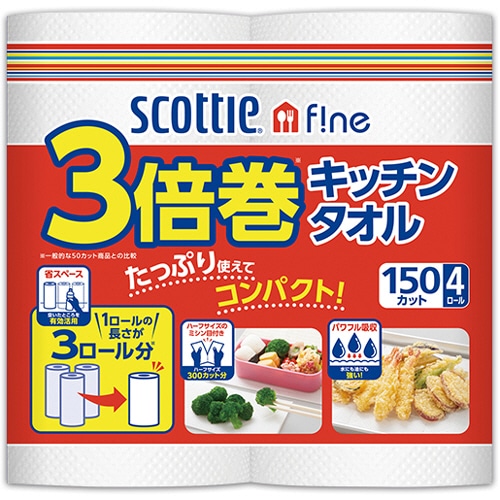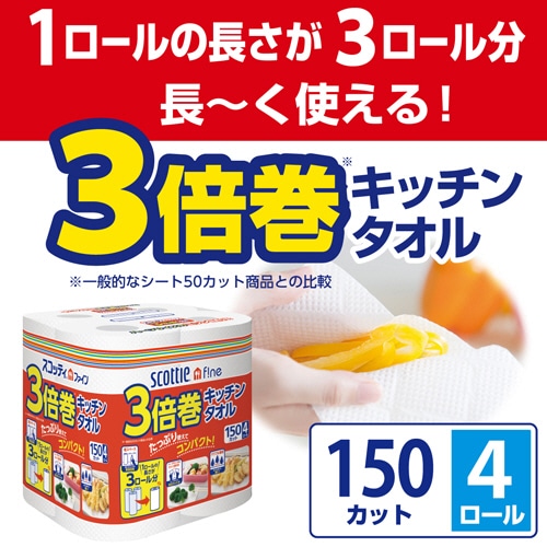日本製紙クレシア スコッティファイン 3倍巻キッチンタオル 150カット 4ロール/袋(ご注文単位1袋)【直送品】