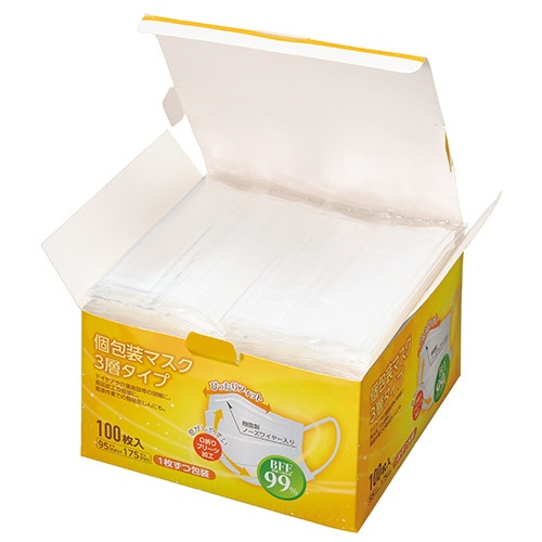 クラフトマン 3層不織布マスク 個包装タイプ S-023 100枚/箱(ご注文単位1箱)【直送品】