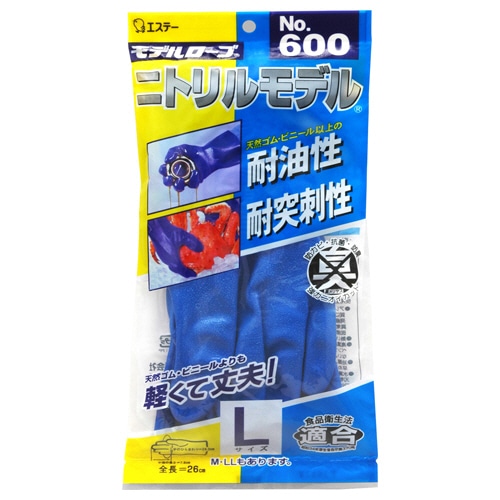 エステー モデルローブ No.600 ニトリルモデル L ブルー 1双(ご注文単位1双)【直送品】