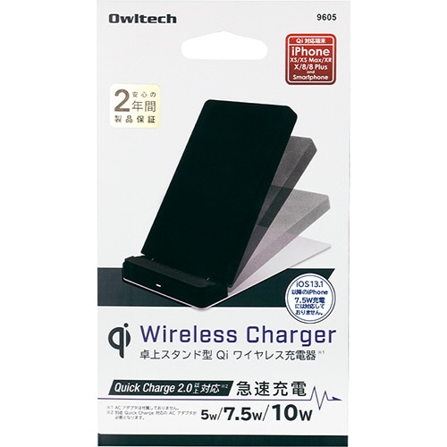 オウルテック Qiワイヤレス充電器 ブラック OWL-QI10W04-BK 1個(ご注文単位1個)【直送品】