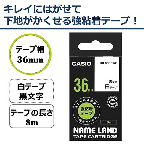 カシオ NAME LAND キレイにはがせて下地がかくせる強粘着テープ 36mm×8m 白/黒文字 XR-36GCWE 1個(ご注文単位1個)【直送品】