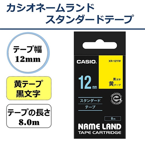 カシオ NAME LAND スタンダードテープ 12mm×8m 黄/黒文字 XR-12YW 1個(ご注文単位1個)【直送品】