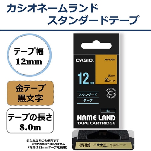 カシオ NAME LAND スタンダードテープ 12mm×8m 金/黒文字 XR-12GD 1個(ご注文単位1個)【直送品】