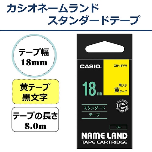 カシオ NAME LAND スタンダードテープ 18mm×8m 黄/黒文字 XR-18YW 1個(ご注文単位1個)【直送品】
