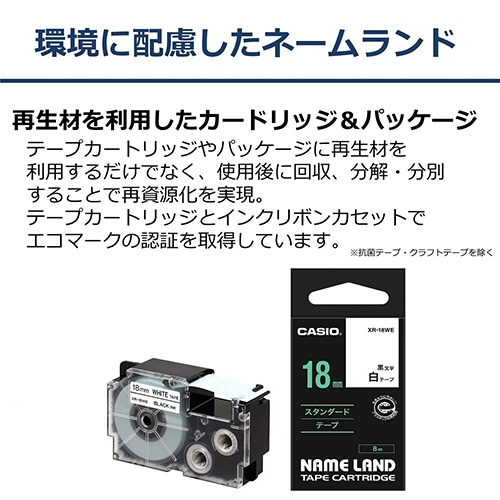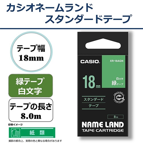 カシオ NAME LAND スタンダードテープ 18mm×8m 緑/白文字 XR-18AGN 1個(ご注文単位1個)【直送品】