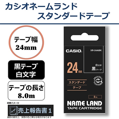 カシオ NAME LAND スタンダードテープ 24mm×8m 黒/白文字 XR-24ABK 1個(ご注文単位1個)【直送品】