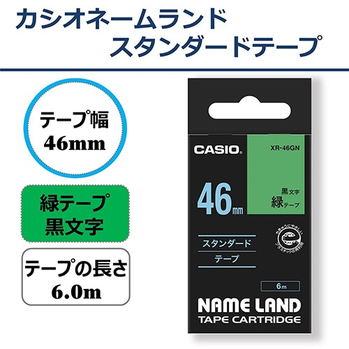 カシオ NAME LAND スタンダードテープ 46mm×6m 緑/黒文字 XR-46GN 1個(ご注文単位1個)【直送品】
