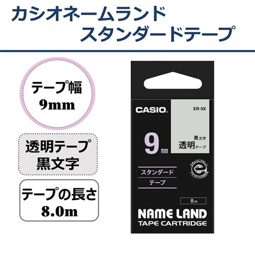 カシオ NAME LAND スタンダードテープ 9mm×8m 透明/黒文字 XR-9X 1個(ご注文単位1個)【直送品】