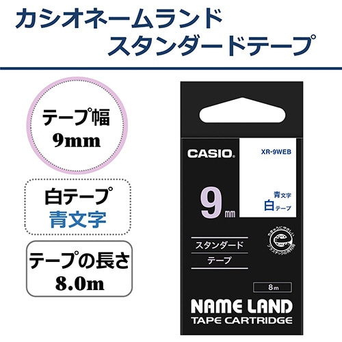 カシオ NAME LAND スタンダードテープ 9mm×8m 白/青文字 XR-9WEB 1個(ご注文単位1個)【直送品】
