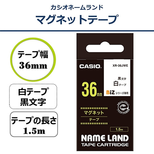 カシオ NAME LAND マグネットテープ 36mm×1.5m 白/黒文字 XR-36JWE 1個(ご注文単位1個)【直送品】