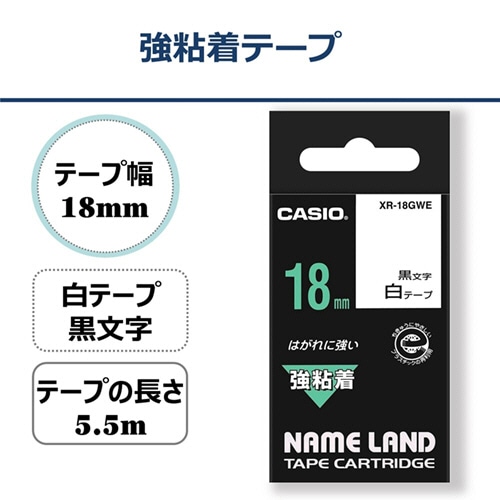 カシオ NAME LAND 強粘着テープ 18mm×5.5m 白/黒文字 XR-18GWE 1個(ご注文単位1個)【直送品】