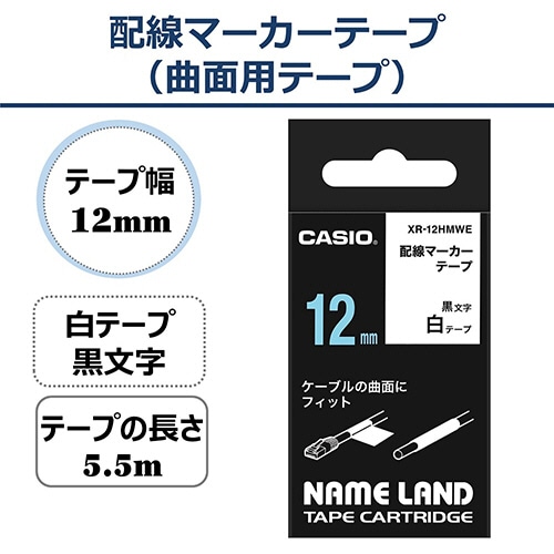 カシオ NAME LAND 配線マーカーテープ 12mm×5.5m 白/黒文字 XR-12HMWE 1個(ご注文単位1個)【直送品】